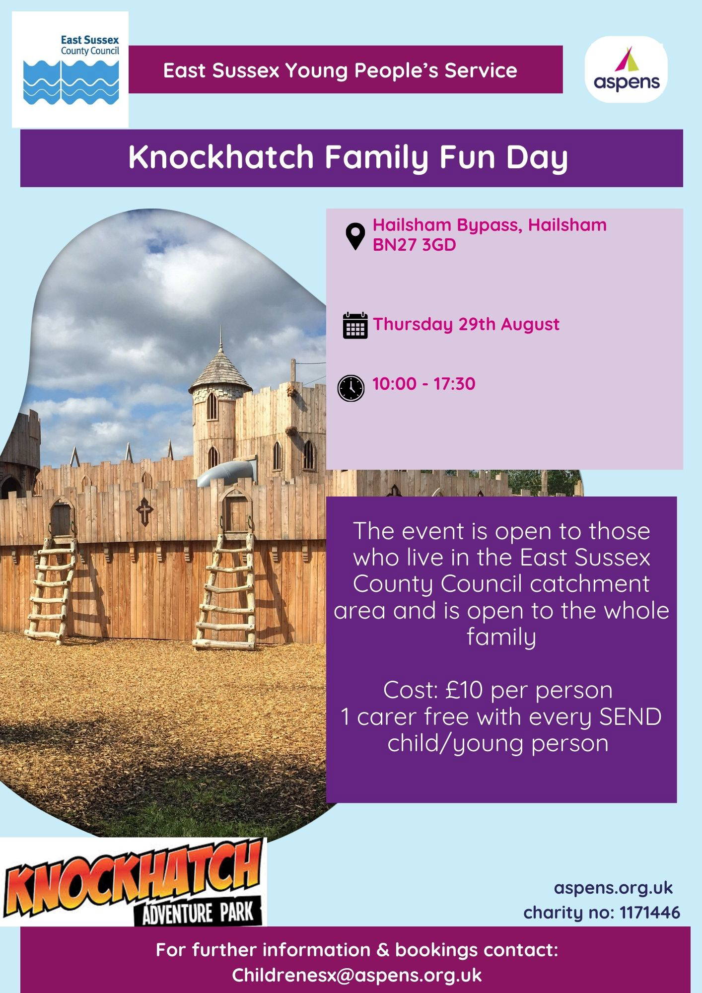 Please email childrenesx@aspens.org.uk to book your family’s place.