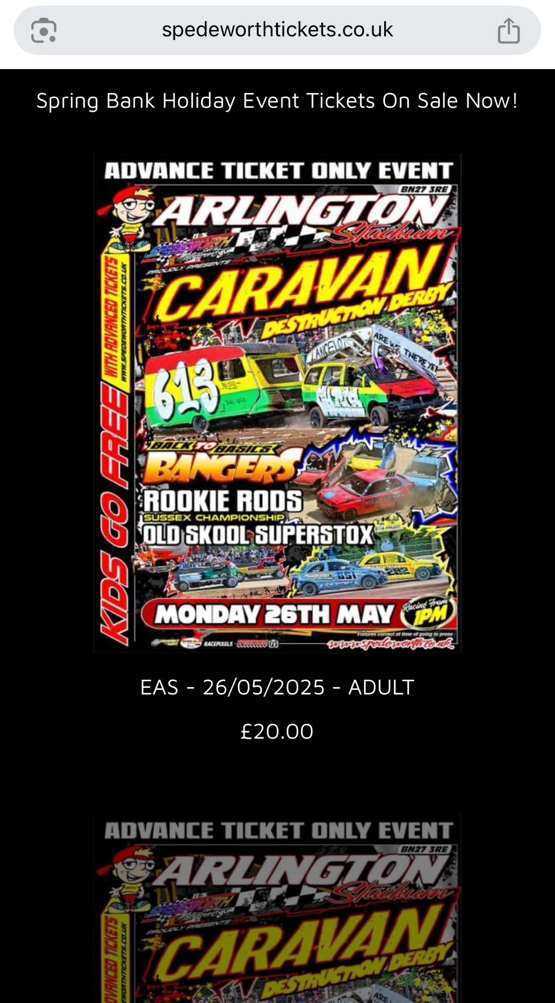 Bank Holiday Monday sees the Caravan Destruction Derby, plus a full racing programme, crash into Arlington Stadium, Eastbourne – the perfect day out for the whole family. Tickets are limited and selling fast, so book NOW so you don’t miss out…