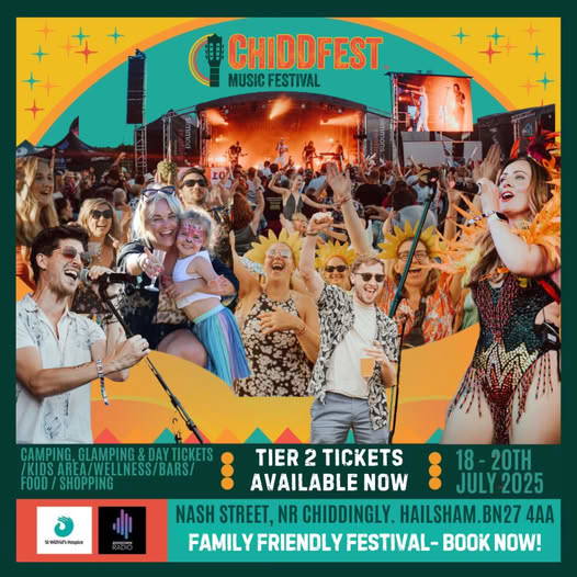 The family friendly festival. There is camping, glamping and day tickets. There is also a kids area, wellness, bars, food and shopping. For more information and to book visit the Facebook page or chiddfest.onllineticketseller.com.