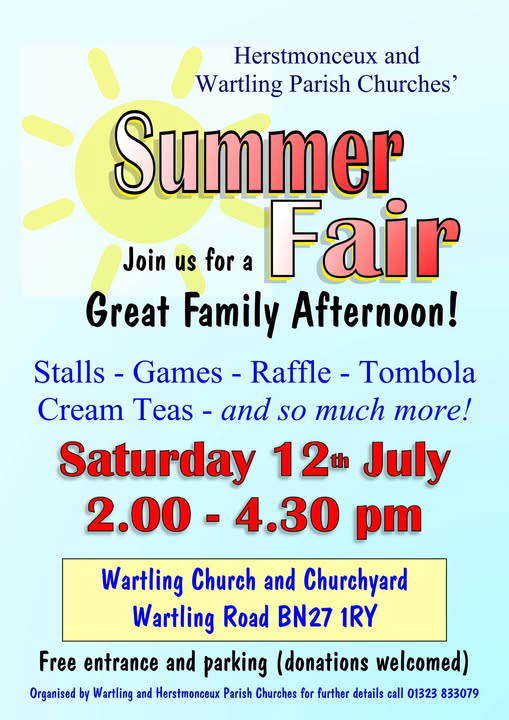 Stalls, games, raffle, tombola, cream teas, and lots more. Free entry and parking. Donations welcome.